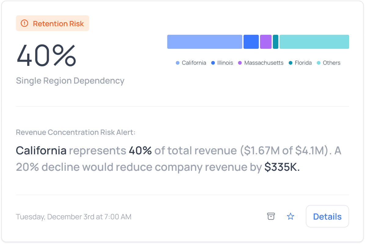 Diversified revenue is resilient revenue. Knowing your exposure helps you prioritize new customer acquisition and expansion strategically.
