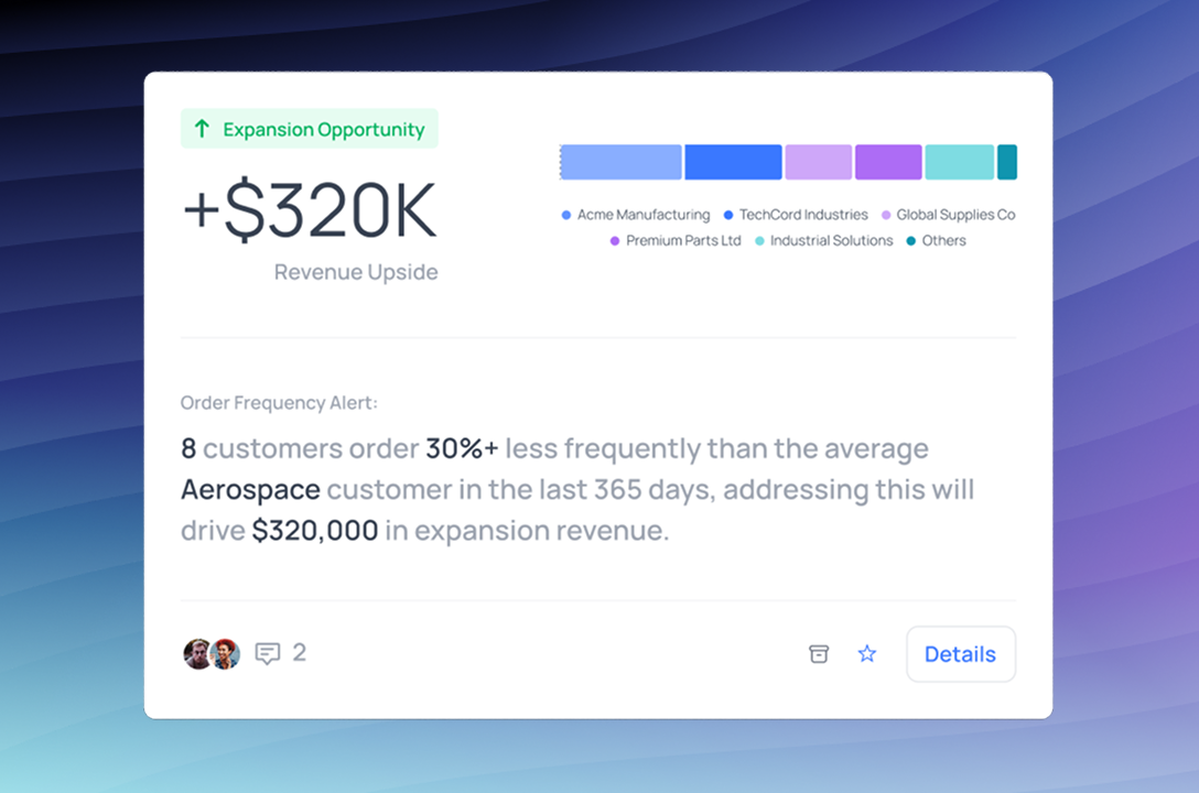 Our algorithms continuously scan your customer, product, and sales data for patterns that signal risk or opportunity.